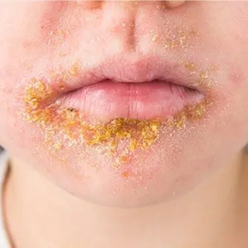 Impetigo is a contagious bacterial skin infection commonly affecting children but can also occur in adults. It usually appears as red sores or blisters that may burst and form yellowish crusts on the skin. The infection often spreads through close contact or scratching affected areas. Good hygiene and proper treatment are important to prevent transmission. Ayurvedic care focuses on cleansing the skin, reducing inflammation, and supporting the body’s natural healing process. Herbal remedies and soothing topical applications help manage symptoms and promote skin recovery while improving overall skin health.