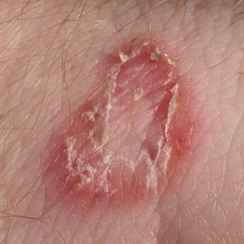 Ringworm, also known as tinea, is a fungal infection affecting the skin, scalp, or nails. It appears as circular, red, itchy patches with slightly raised borders that may gradually expand. Despite its name, it is not caused by worms but by dermatophyte fungi. The infection spreads through direct contact with infected individuals, animals, or contaminated surfaces. Ayurvedic care focuses on reducing fungal growth, purifying the skin, and strengthening immunity. Herbal treatments, cleansing therapies, and proper hygiene help control the infection, relieve itching, and promote healthier skin recovery.
