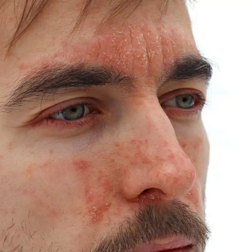Seborrheic dermatitis is a skin condition that commonly affects oily areas such as the scalp, face, and chest. It causes redness, itching, flaky patches, and greasy scales on the skin. The condition may be associated with excessive oil production, fungal growth, stress, or environmental factors. In Ayurveda, this disorder is linked to imbalance in body energies affecting the skin and scalp. Treatment focuses on cleansing the skin, controlling inflammation, and restoring natural balance. Herbal preparations, scalp therapies, and proper skin care routines can help reduce flaking, soothe irritation, and maintain healthier skin and scalp.
