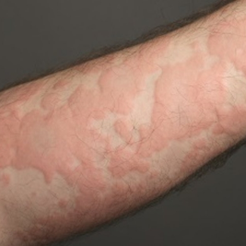 Urticaria, commonly known as hives, is a skin reaction characterized by raised, itchy welts that appear suddenly on the skin. These welts may vary in size and can disappear and reappear within hours. The condition is often triggered by allergies, certain foods, medications, infections, or stress. Ayurveda relates urticaria to imbalance in body energies and toxin accumulation in the bloodstream. Treatment focuses on detoxification, soothing skin irritation, and strengthening immunity. Herbal remedies, dietary regulation, and lifestyle modifications help reduce allergic responses and support healthier skin balance.